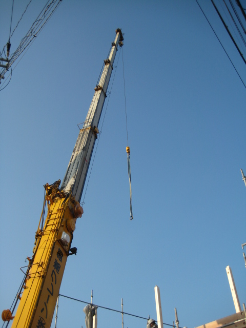 クレーンを操るオペレーターと棟梁の息もぴったりで