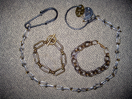 ブレス3つ ウォレットチェーン1つ 寂しげな黒皮鉄板に溶接したらバッチリに!